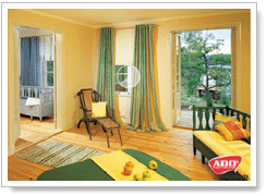 *對於過窄過長的房間,可以選擇橫向直線的圖案的窗簾,讓房間增肥。橫條紋圖案的窗簾設計在視覺上可將狹長的房間變短。* 臥室窗戶比較小,安裝厚質布料的落地窗簾,會產生笨重,累贅的視覺效果.因而,最好安裝升降簾,如風琴簾,捲簾,羅馬簾等窗簾設計。